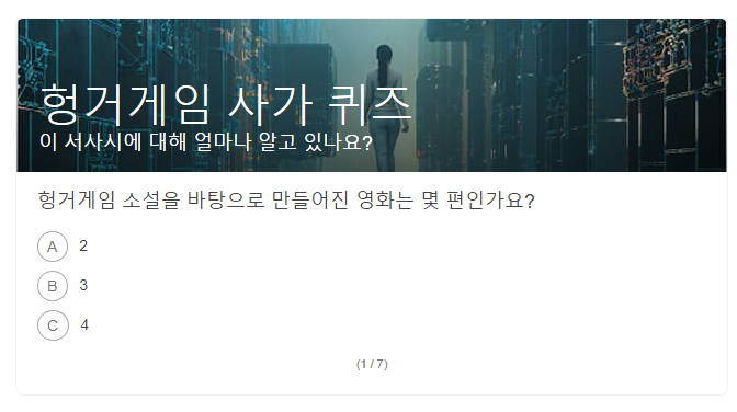 마지막 문제는 헝거게임 사가의 결말과 주요 메시지에 관한 것이에요. 이번 문제는 참가자들에게 사고력과 해석력을 요구할 거예요. 헝거게임 사가의 깊은 의미를 파악하고 그에 대한 질문에 적절히 답할 수 있는 참가자가 이번 쿼터 퀴즈에서 성공할 수 있을 거예요. 이제 마지막 쿼터에 도전하는 참가자들, 모두 힘내세요!